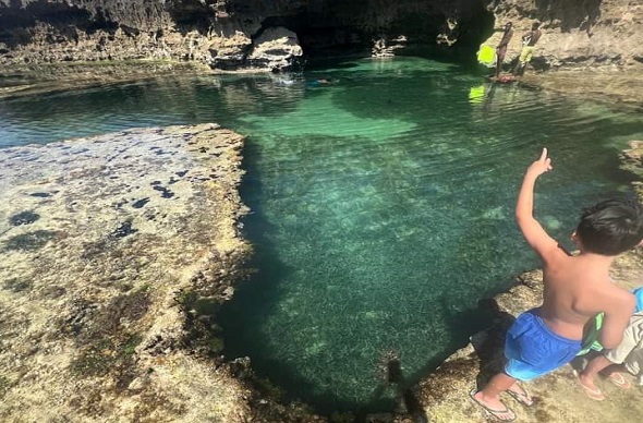 According to some residents, tourists go to the pool for therapy, and others see it as a sacred shrine. Tourists visiting the area, are advised to ask for a guide for safety since it is far from the main road. They are also advised to wear beach shoes to avoid the numerous sea urchins.